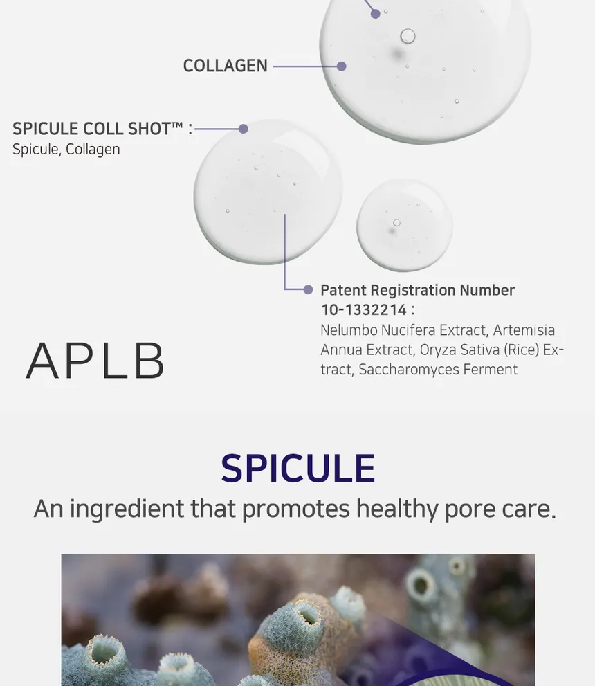 Αυτός ο ορός είναι εμπλουτισμένος με άφθονο Spicule Coll Shot™, μια πατενταρισμένη μικροβελόνα από σπίκουλε και κολλαγόνο, για την αναζωογόνηση του ξηρού δέρματος και την ενίσχυση της απορρόφησης των απαραίτητων συστατικών. Τα εκχυλίσματα Centella asiatica στην άοσμη σύνθεση καταπραΰνουν και ενυδατώνουν το ευαίσθητο δέρμα, ενώ τα εκχυλίσματα αρτεμισίας, λωτού, ρυζιού και ζύμης ενισχύουν το δερματικό φραγμό. Το ελαφρώς όξινο επίπεδο pH του ορού μιμείται το υγιές δέρμα για την πρόληψη των ερεθισμών του δέρματος.