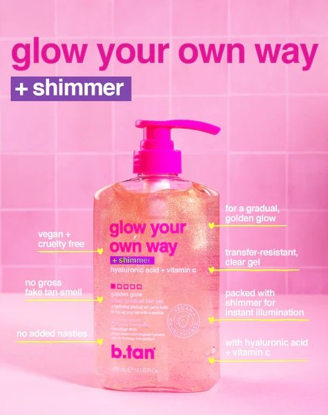 Λάμψε με τον δικό σου τρόπο! Ένα διάφανο, transfer-resistant self-tan gel με χρυσό shimmer για extra λάμψη. Ιδανικό για όσους θέλουν μια ηλιοκαμένη όψη με μια χρυσή πινελιά που προσθέτει λάμψη!