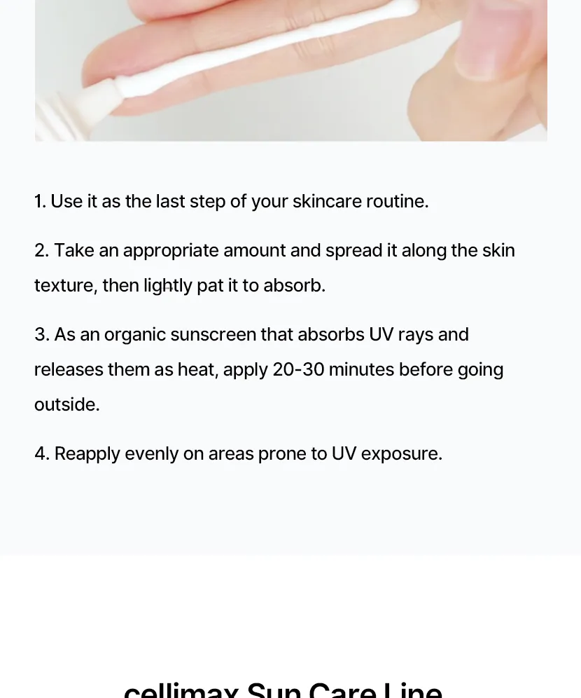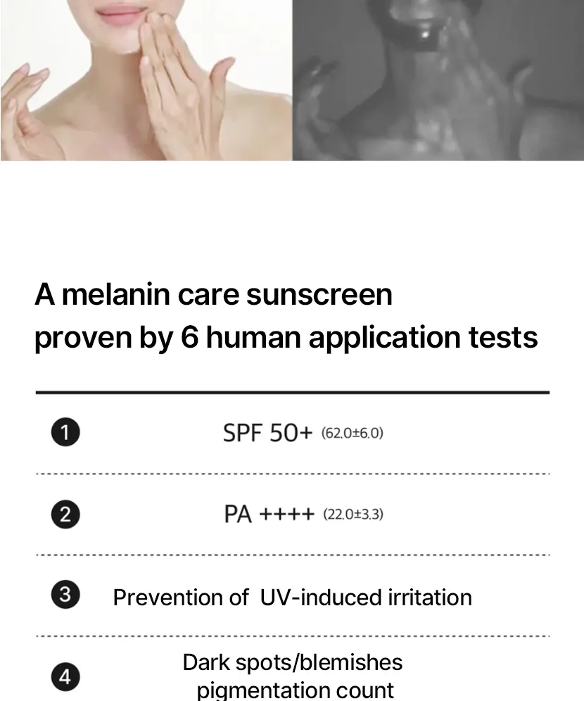 - Ένα χημικό αντηλιακό με ευρέος φάσματος SPF50+ PA++++ που προστατεύει το δέρμα από τις ακτίνες UV και βοηθά στη μείωση της εμφάνισης σκούρων κηλίδων και ατελειών.