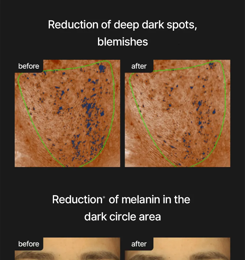 • Με Τρανεξαμικό Οξύ, Νιασιναμίδη και Melazero V2 που συμβάλλουν στην αποτροπή υπερβολικής παραγωγής μελανίνης, μειώνοντας την εμφάνιση των σκούρων κηλίδων.