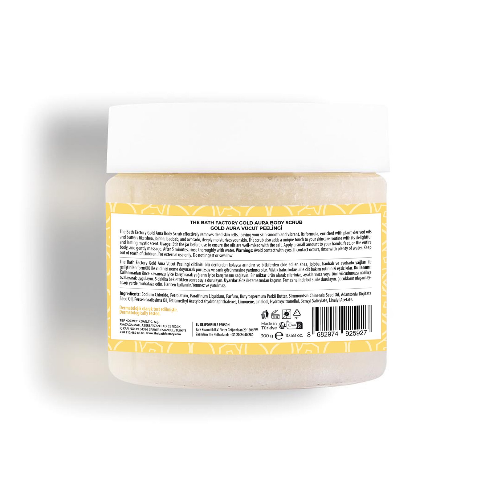 Επιλέξτε το Gold Aura Scrub από τη The Bath Factory για να μεταμορφώσετε την καθημερινή περιποίηση της επιδερμίδας σε μια αναζωογονητική εμπειρία. Χαρίστε στο δέρμα και στις αισθήσεις σας την premium φροντίδα που πραγματικά αξίζουν.