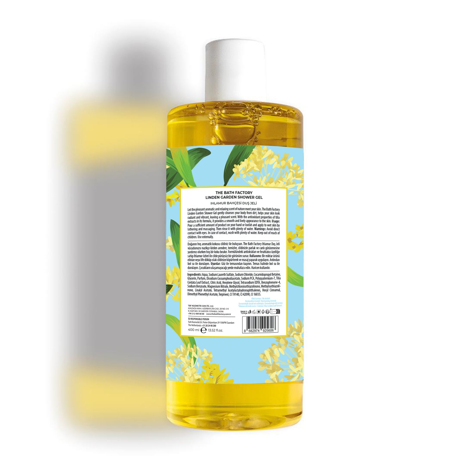 🌼 Μεταμορφώστε το μπάνιο σας σε ένα καταφύγιο ηρεμίας με το The Bath Factory Linden Garden. Αυτό το αφρόλουτρο σας προσκαλεί να αφήσετε το ευχάριστο και χαλαρωτικό άρωμα της φύσης να αγγίξει την επιδερμίδα σας, θυμίζοντας έναν περίπατο σε έναν ανθισμένο κήπο φλαμουριάς μια ανοιξιάτικη μέρα.